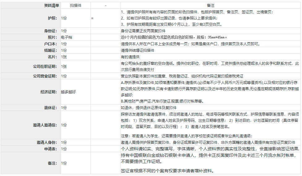 1.申請此類別的簽證只需提供掃描件,每一項都需分開掃描。掃描須按以下要求: