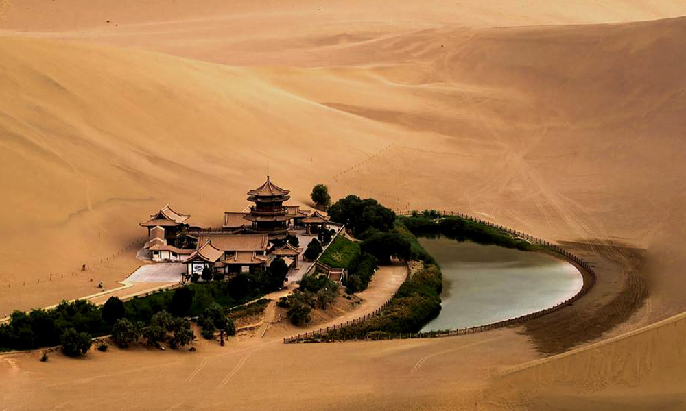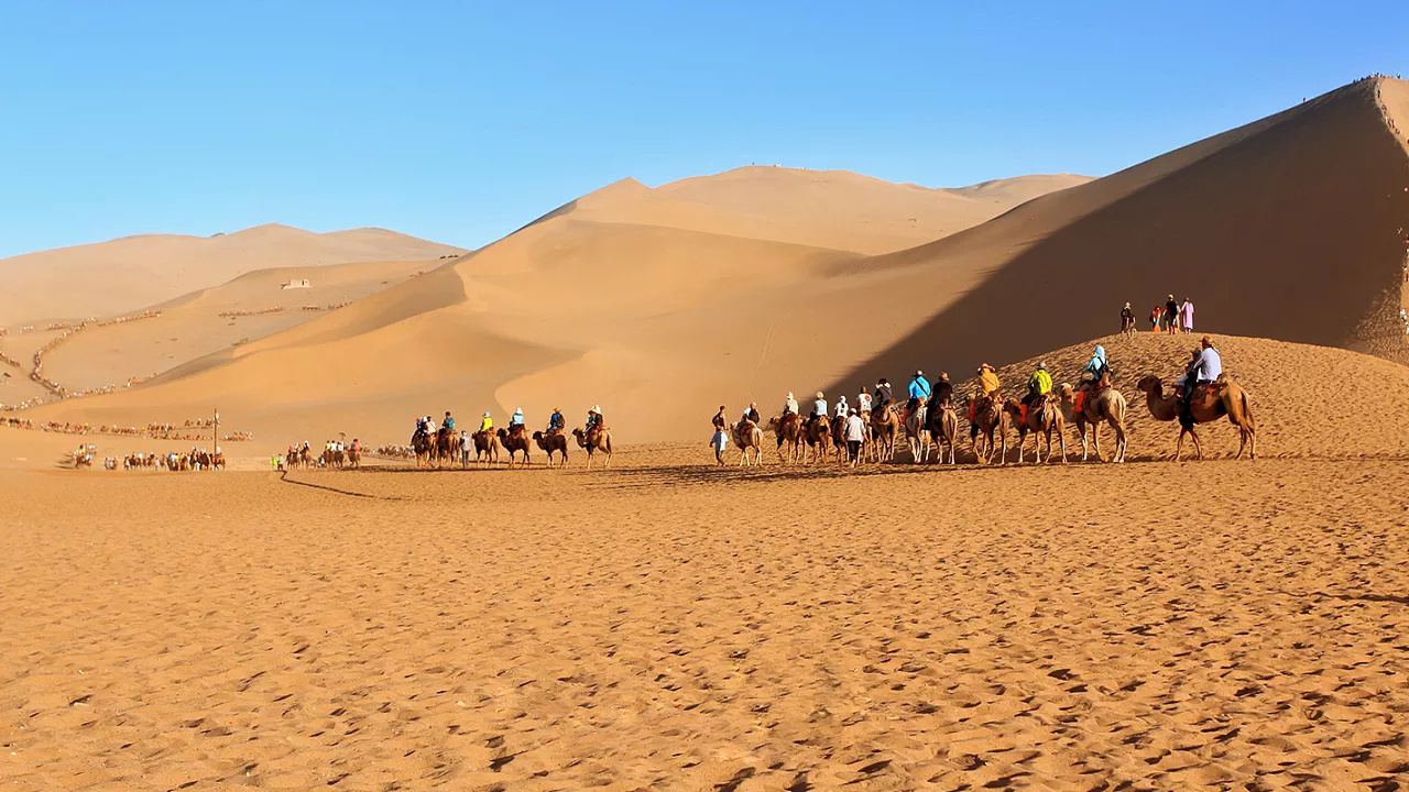 【鳴沙山月牙泉】(游覽時間約2小時)因沙動有聲而得名,如遇摩擦振動,便會殷殷發聲,輕若絲竹,重如雷鳴。故“沙嶺晴鳴”為敦煌“八景”之一。月牙泉處于鳴沙山環抱之中,因其形酷似一彎新月而得名,自漢朝起即為敦煌八景之一;游人至此,無論從山頂鳥瞰,還是來泉邊漫步,都會馳懷神往,遐思萬千,確有“鳴沙山怡性,月牙泉洗心”之感。
