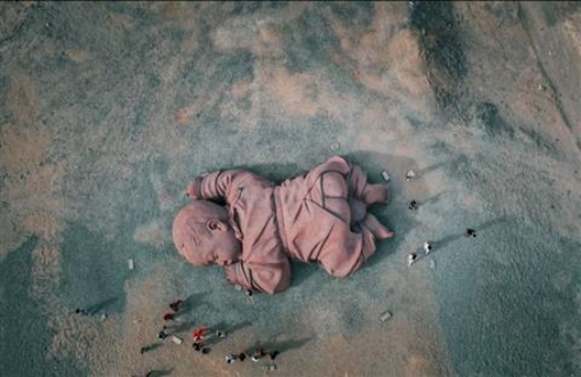 早餐后,乘車前往敦煌,途徑瓜州,后游覽雕塑【大地之子】 (參觀 20 分鐘)雕塑主體為茫茫戈壁之上趴伏在地、恬然入睡的長 15 米,高 4.3 米,寬 9 米的巨大嬰兒。
