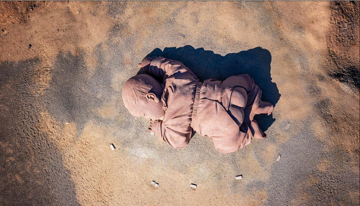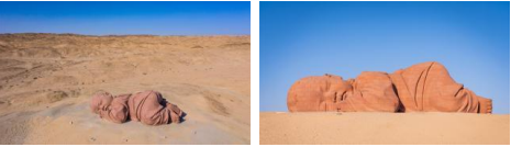 大地之子位于戈壁灘之上,是利用三維掃描獲取模型數(shù)據(jù)進行 3D 雕刻的大型戶外主題雕塑作品,我們人類就像是地球母親的孩子,